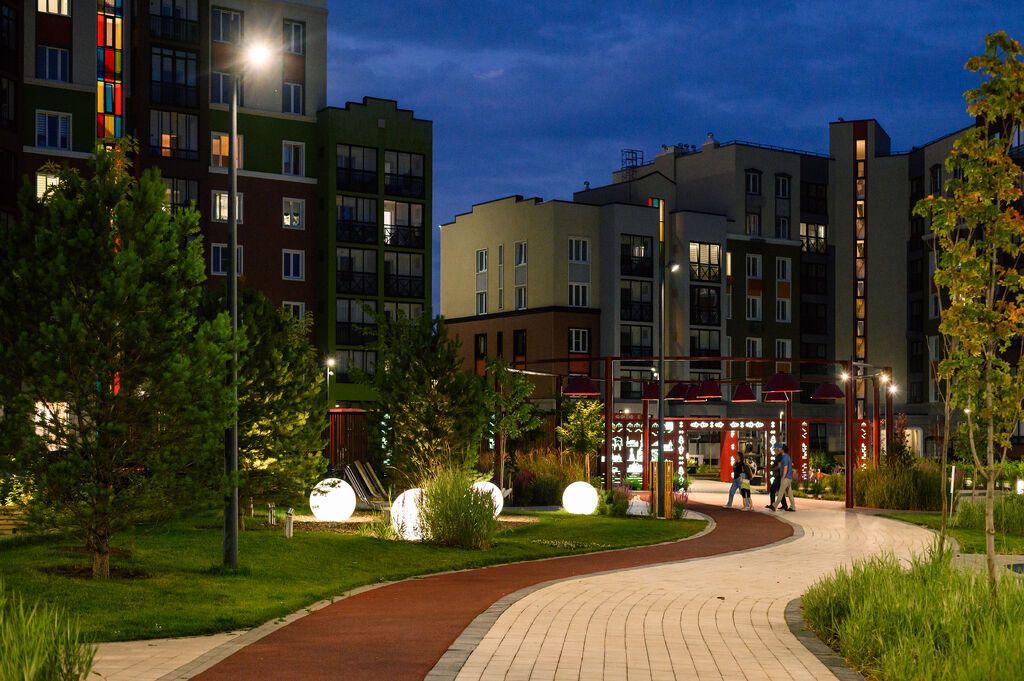 - Трехуровневое освещение и архитектурная подсветка преображает ночной облик всего комплекса.