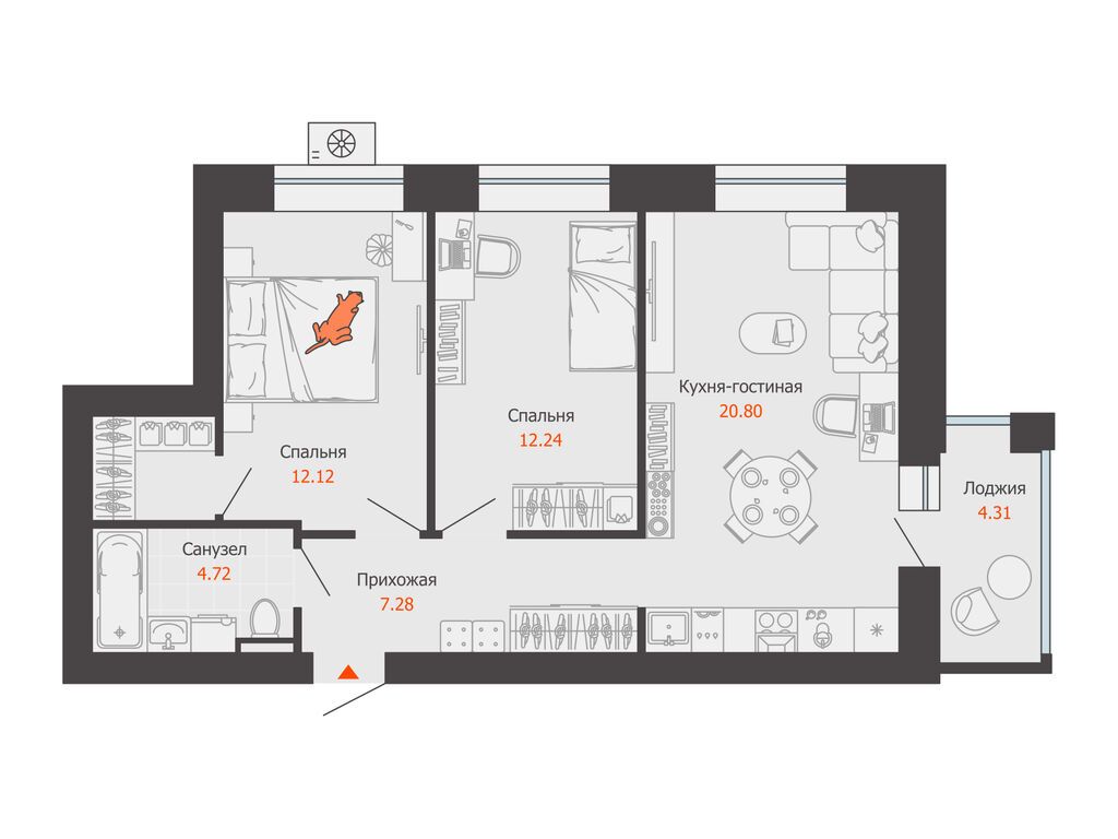 Продается 2-комнатная квартира в 3 км от Зубаревского леса, площадью 62.00 кв. м. Квартира находится в жилом комплексе комфорт-класса ЗНАК от девелопера "Железно".