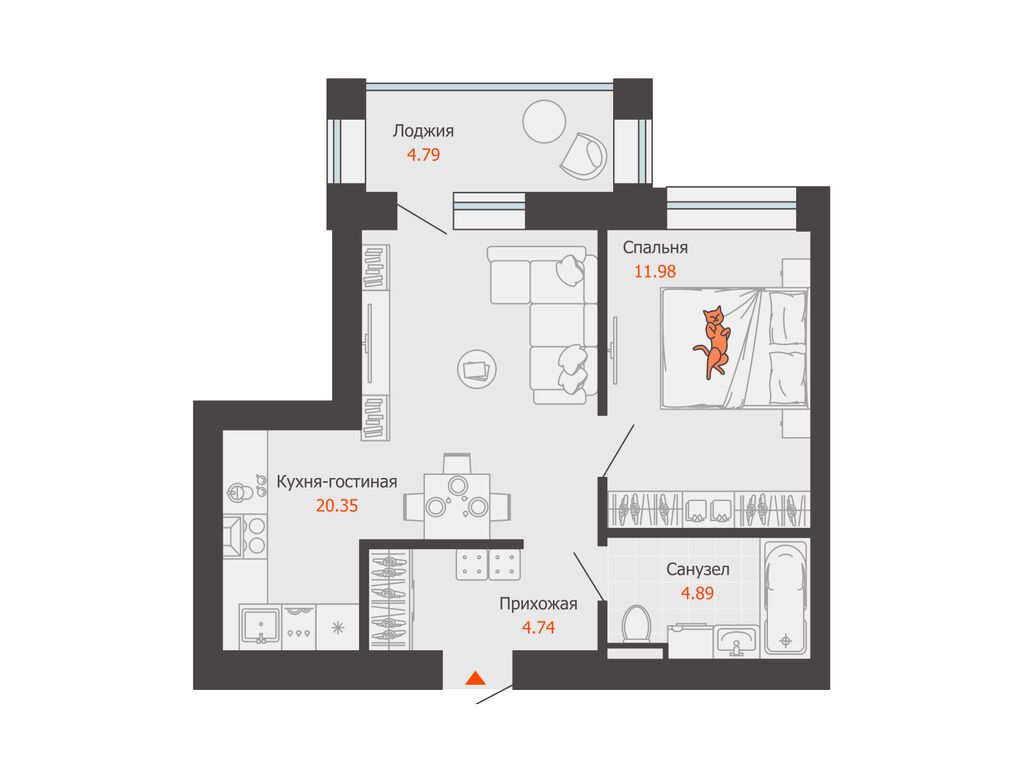 Продается 1-комнатная квартира в 3 км от Зубаревского леса, площадью 44.00 кв. м. Квартира находится в жилом комплексе комфорт-класса ЗНАК от девелопера "Железно".
