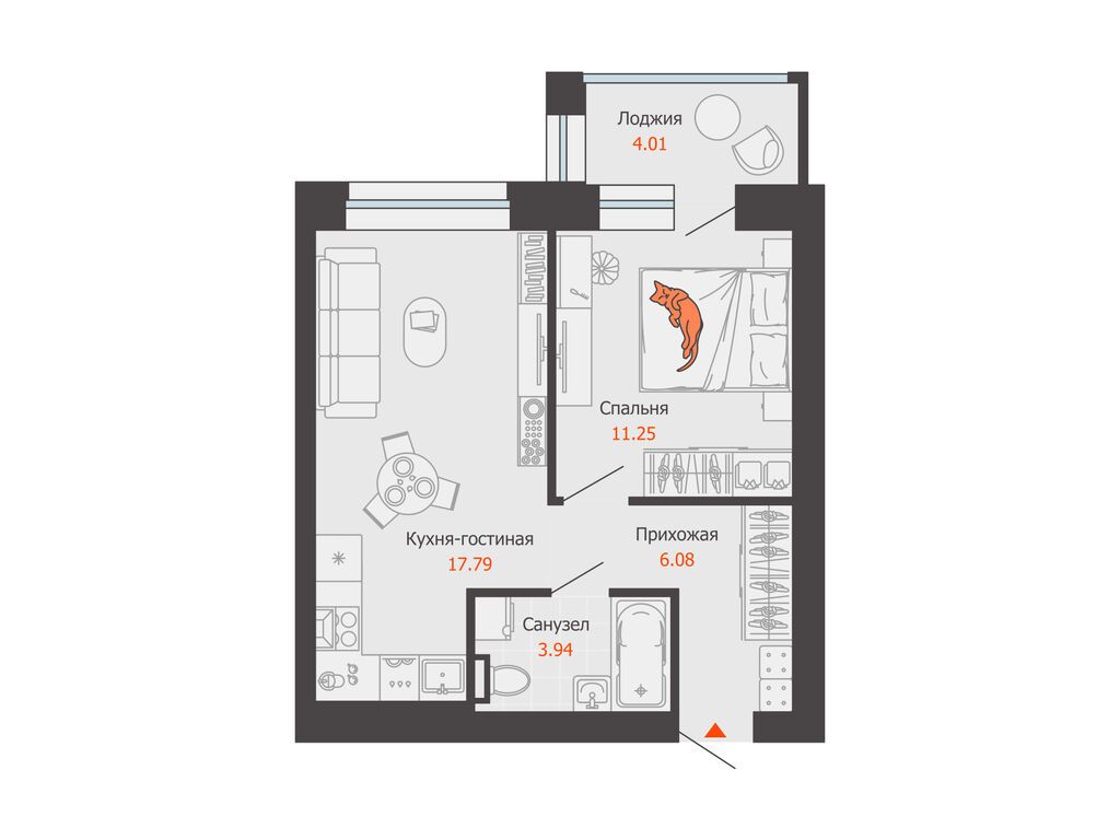 Продается 1-комнатная квартира, корпус 4/2, площадь 41.00 кв. Квартира находится в жилом комплексе комфорт-класса "Зарядное" (ГК "Железно").