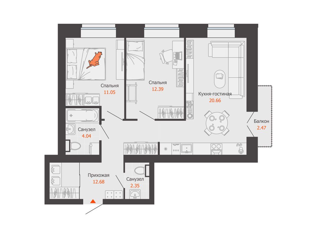 Купить 2к квартиру 64 м² в ЖК Зарядное