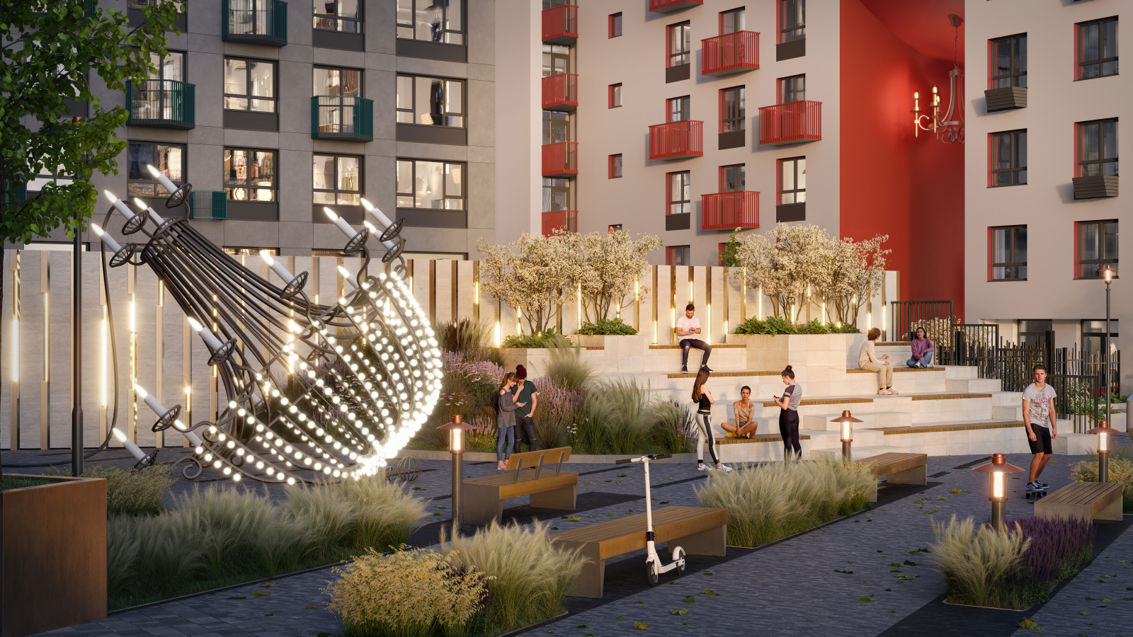 Здесь реализована уникальная консьерж-система, которая сочетает индивидуальный подход, максимальное внимание к деталям и трепетное отношение персонала. Для резидентов работает круглосуточный клиентский центр в приложении "Мажордом".